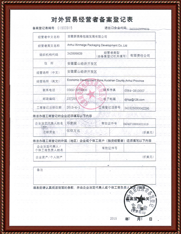 安徽新美格包裝發(fā)展有限公司